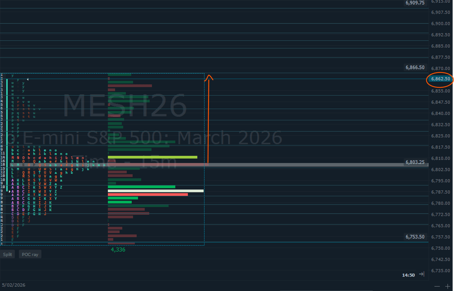 - POC volume 1 focuses in between 6753 and 6803consistent with participation supporting a rebound from the lower boundary.