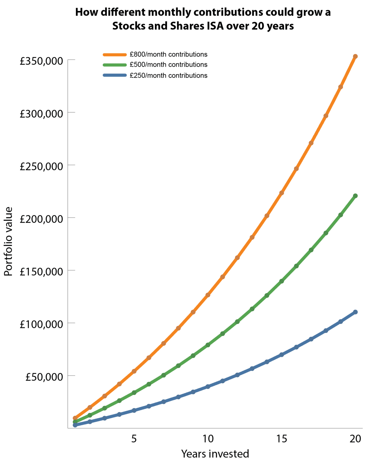 What he emphasizes is plain. Even with a relatively good rate of return, a lower level of investment may still not be enough for the portfolio needed to generate £10,000 a year. This means contribution, time, AND investment choices matter.